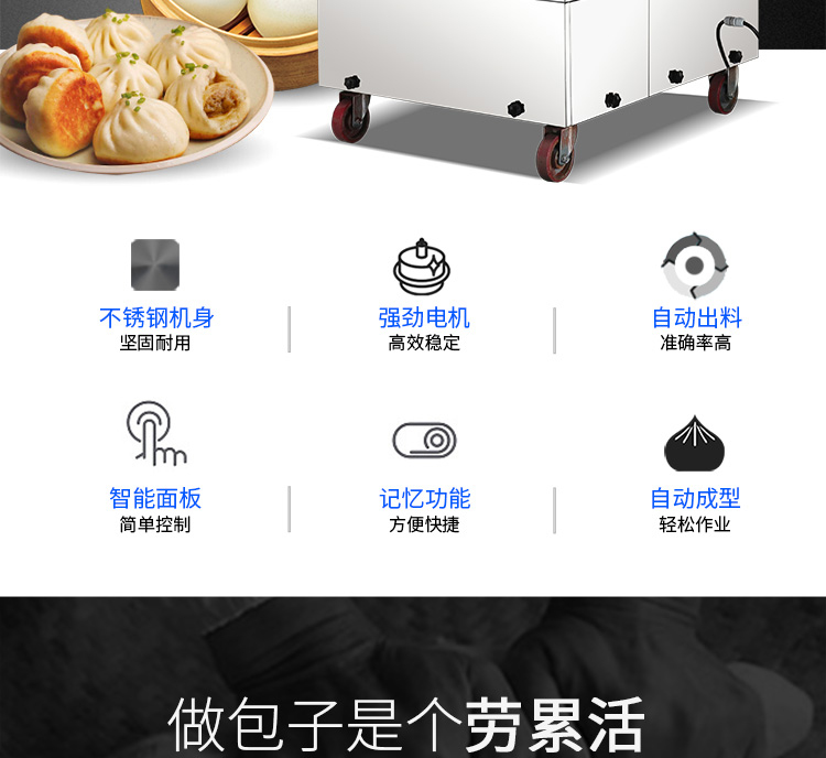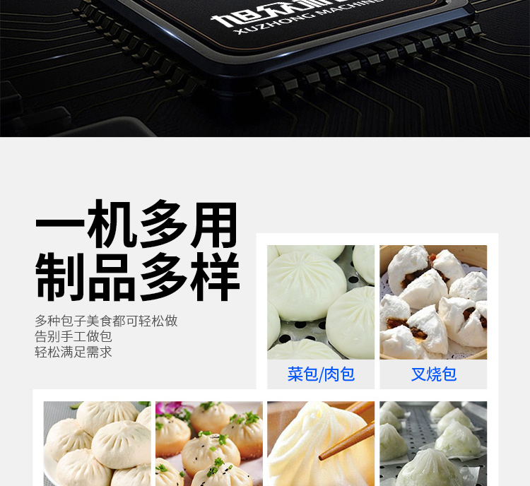 ◆制品多樣化,可生產(chǎn)各種肉包、肉菜包、菜包、小籠包、湯包、水晶包、圓饅頭、奶黃包、豆沙包、叉燒包、南瓜餅等幾十種包餡制品。