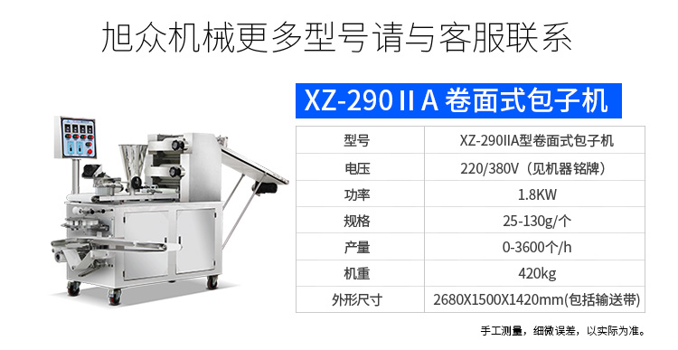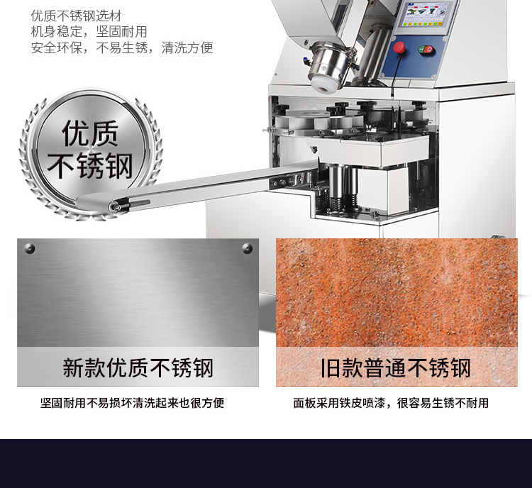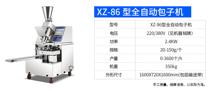 旭眾牌XZ-915全自動(dòng)包子機(jī)體積小重量輕,外殼及接觸食品部分均由不銹鋼制造,外觀精美耐用;采用三變頻無極變速調(diào)控,生產(chǎn)性能穩(wěn)定。設(shè)計(jì)先進(jìn),結(jié)構(gòu)簡(jiǎn)單,操作方便。包子機(jī)三大特色: