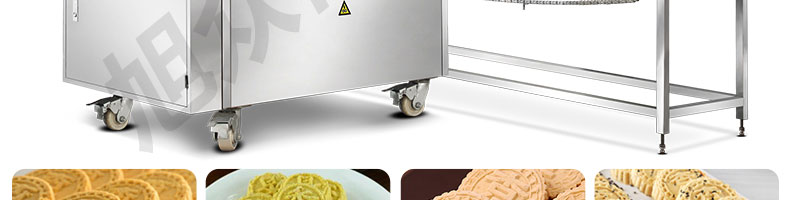 ◆杏仁餅機配有自動排盤裝置,成型后可以自動輸送并擺盤。適用于花生、芝麻等的干性物作為夾心材料,做出多種不同口味夾心的粉餅。也可以關(guān)閉夾心功能,做不夾心的杏仁餅、炒米餅、綠豆餅、桂花炒年糕等粉餅。