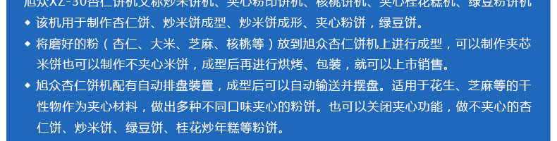 ◆杏仁餅機用于制作杏仁餅、炒米餅成型、炒米餅成形、夾心粉餅,綠豆餅。