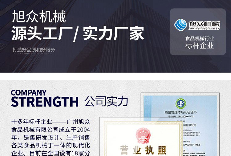 安徽旭眾智能科技有限公司是一家集科研開發(fā),生產設計,營銷服務為一體的現(xiàn)代化生產企業(yè)。現(xiàn)代化生產車間,精湛制造技術,所產機械歷經市場重重考驗,不斷贏得海內外客戶的贊譽。