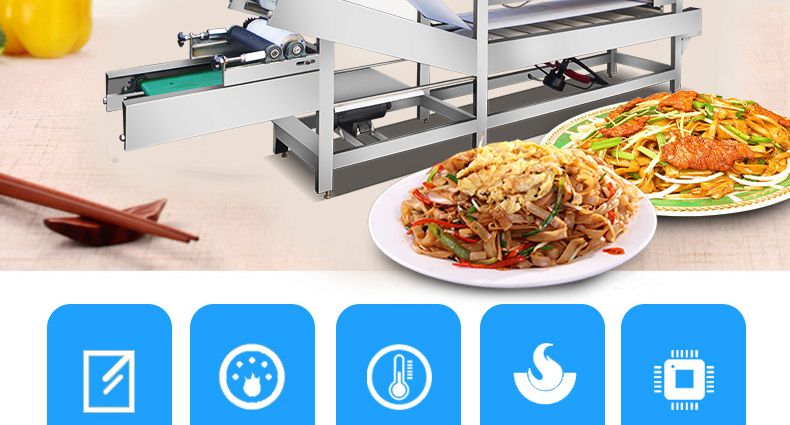 ◆一機多用:多功能河粉機器可生產(chǎn)制作河粉、腸粉、涼皮、面皮、米皮、粉皮、切粉、粿條等。