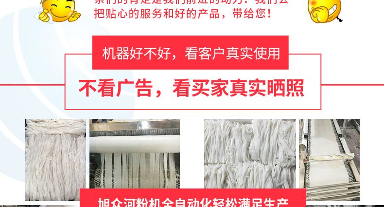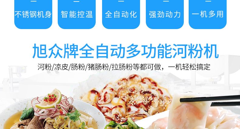 本公司推出的高效節(jié)能河粉機技術(shù)先進、品質(zhì)領(lǐng)先。該河粉機既傳承民間的河粉制作工藝,使之保留并超越原有風(fēng)味,又引進先進的食品加工技術(shù),大大提升了生產(chǎn)效益。廣大客戶使用高效節(jié)能河粉機后一直贊譽:該機是河粉機中的科技典范,旭眾憑借其品質(zhì)與優(yōu)良服務(wù),是用戶的優(yōu)選選擇。該機一機多用,可根據(jù)需求定制河粉、涼皮、拉腸粉、豬腸粉等功能。