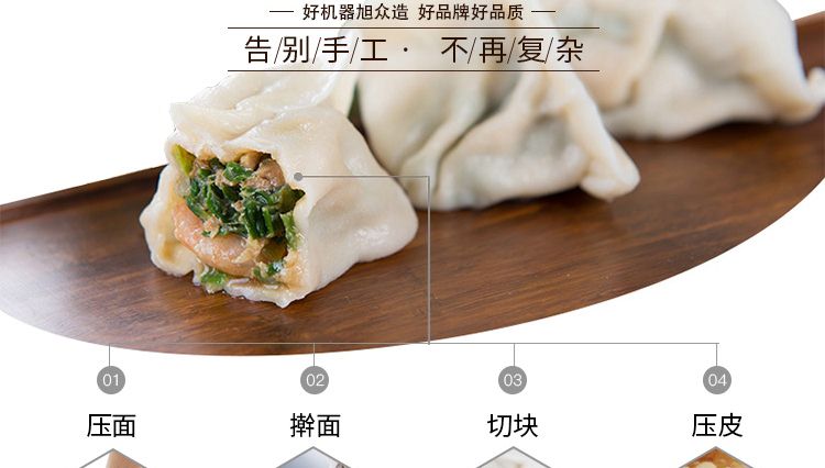 本機(jī)具有高效節(jié)能、安全衛(wèi)生、無(wú)邊角廢料、大小厚薄可定制等優(yōu)點(diǎn),使所生產(chǎn)餃子皮在外觀、口感、重量達(dá)到空間統(tǒng)一,從而轉(zhuǎn)變了當(dāng)今生產(chǎn)效率低、員工揮霍、二次污染、中部缺口等現(xiàn)狀,該仿手工餃子皮機(jī)除具有以上優(yōu)點(diǎn)外,還可依據(jù)生產(chǎn)必要轉(zhuǎn)變出皮速度等優(yōu)點(diǎn)。