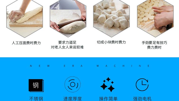 ◆壓面均勻、本機(jī)具有高功能,無(wú)邊角廢料;