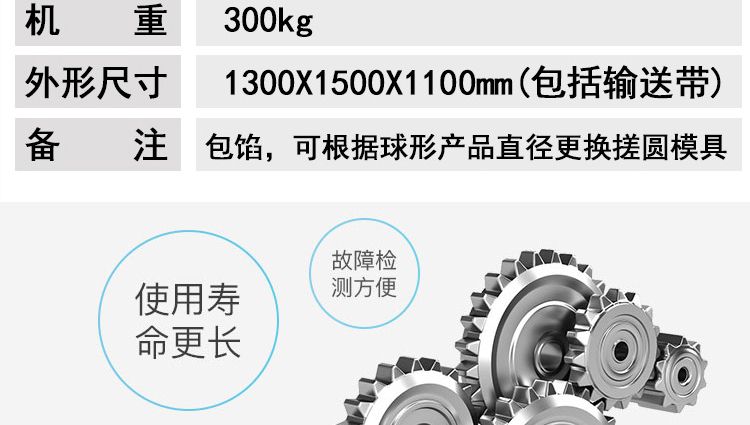 備注: | 包餡,可根據球形產品直徑更換搓圓模具 |