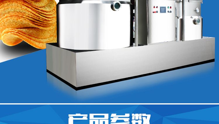 ●雙室采用上下兩個罐,脫油時確保絕對無回油,使含油、含水率低。油炸、脫油、脫水、油過濾一體化設(shè)計,在真空下連續(xù)性完成,產(chǎn)品含油量低,產(chǎn)品處于負壓狀態(tài),在這種相對缺氧的條件下進行食品加工,可以減輕甚至避免氧化作用(例如脂肪酸敗、酶促褐變和其他氧化變質(zhì)等)所帶來的危害。在負壓狀態(tài),以油作為傳熱媒介,食品內(nèi)部的水分(自由水和部分結(jié)合水)會急劇蒸發(fā)而噴出,使組織形成疏松多孔的結(jié)構(gòu)。