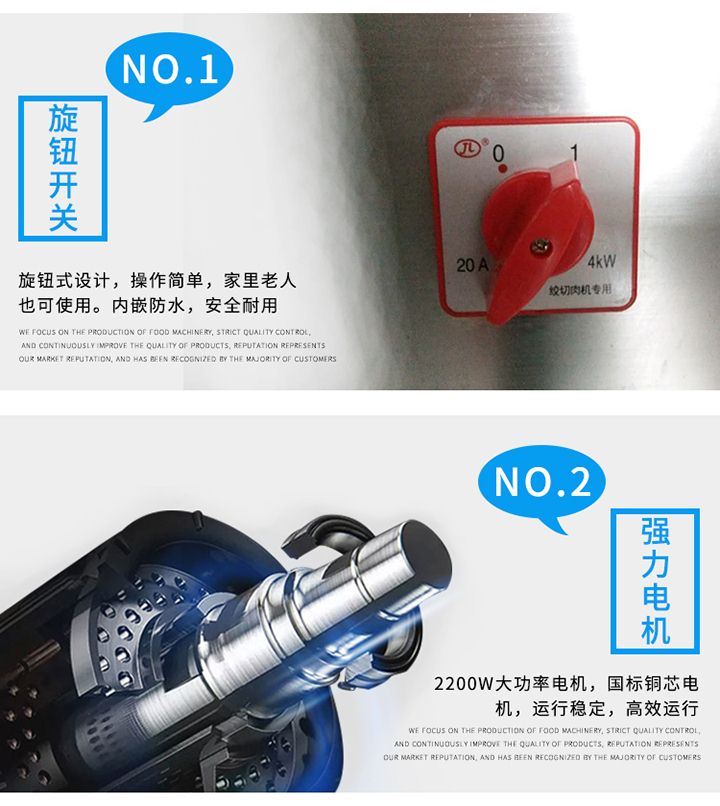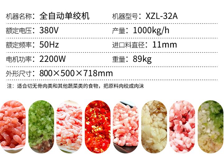 XZL-32A單絞機(jī)吸取同行之優(yōu)點(diǎn),改進(jìn)新型絞肉切肉機(jī)械,它能切豬肉、羊肉、牛肉、魚(yú)及其它各種肉類、所切肉片厚度適中切片效率高,是餐廳、賓館、酒樓、單位食堂等絞肉切肉的理想機(jī)械,該機(jī)外形獨(dú)特,操作方便,維修簡(jiǎn)單,工作效率高,在同行業(yè)中處領(lǐng)先地位,與食物接觸部分均采用不銹鋼制造符合食品衛(wèi)生標(biāo)準(zhǔn)。
