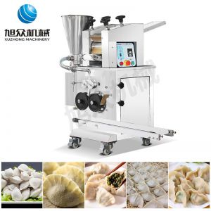 旭眾牌JGB-180型仿手工餃子機是我公司開發(fā)生產(chǎn)的先進的自動餃子生產(chǎn)設(shè)備。設(shè)備包括主動壓皮部分、自動供餡部分、自動包合成型部分、自動成品輸送部分,并且只要更換模具,就可制鍋貼等食品。