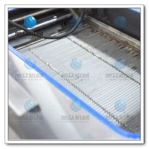 通用斜切魚片機(jī)是模擬手工切片的原理采用變速箱傳動,自動進(jìn)料的原理,自動研制而成。一次性可斜切1-3片整片魚肉(一條魚分為兩整片)。本機(jī)采用50-100片刀同時斜切的原理,解決了單刀切片效率慢和不均勻的難題,真正意義上實(shí)現(xiàn)了多片斜切。