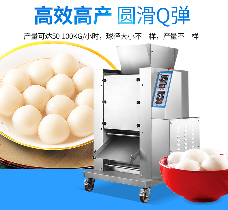 ? 本機速度高,每小時可生產0-120kg湯圓,球徑大小不一樣,產量不一樣。