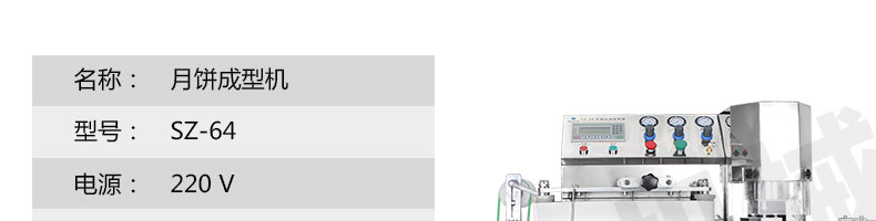 SZ-64月餅自動(dòng)成型機(jī),可同于制作各種月餅,適合印制各種月餅。適用于蛋糕房、休閑食品廠、食品加工產(chǎn)、面包房、月餅加工廠、超市、學(xué)校、食堂等各種工作場所??蓾M足不同客戶群體。免費(fèi)提供工藝技術(shù)。